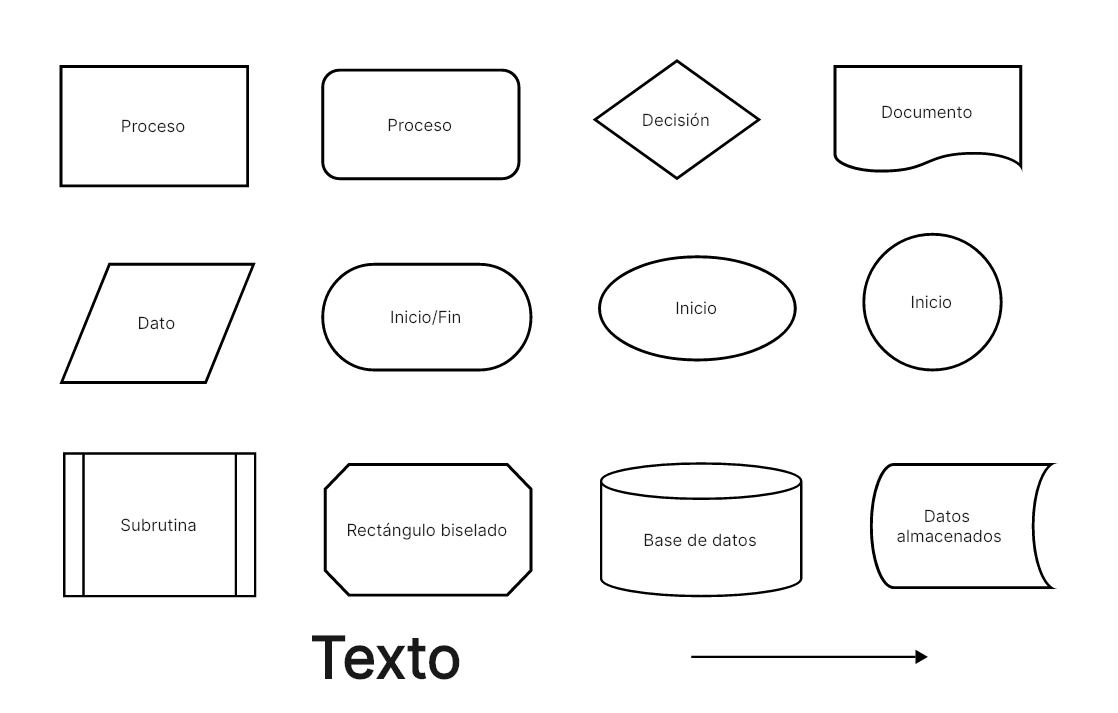 Inicio/Final: Ovalado (o con esquinas redondeadas) para marcar el comienzo y el fin del proceso.